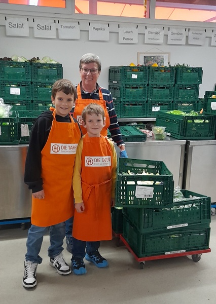 In den Schulferien ging man dieser Frage auf den Grund: Ehrenamtlich arbeiten! Klare Angelegenheit für Julius und Mattis: Schürzen an und mithelfen.