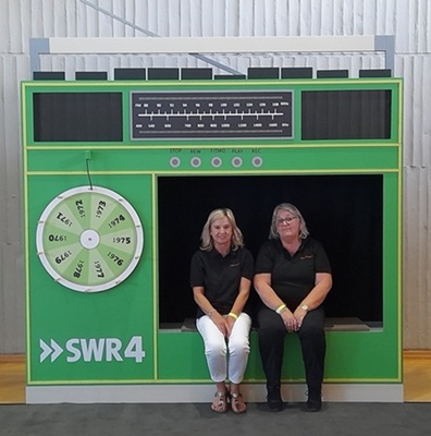 Alle Tafelhelfer hatten Spaß dabei, ebenso zwei Mitgliedern des Frauenchors Wörth. Und wer kennt es nicht noch: Das beliebte Kofferradio, verschönert durch Elisabeth Kempf und Ute Schindler.