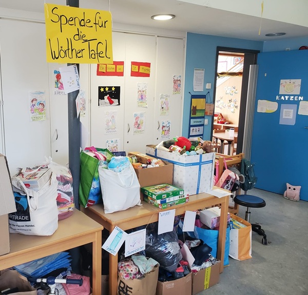 Da Vieles keinen Interessenten findet, der Fund Raum aber in gewissen Abständen gänzlich geleert wird, spendet das Europa Gymnasium diese Sachen der Tafel Wörth.